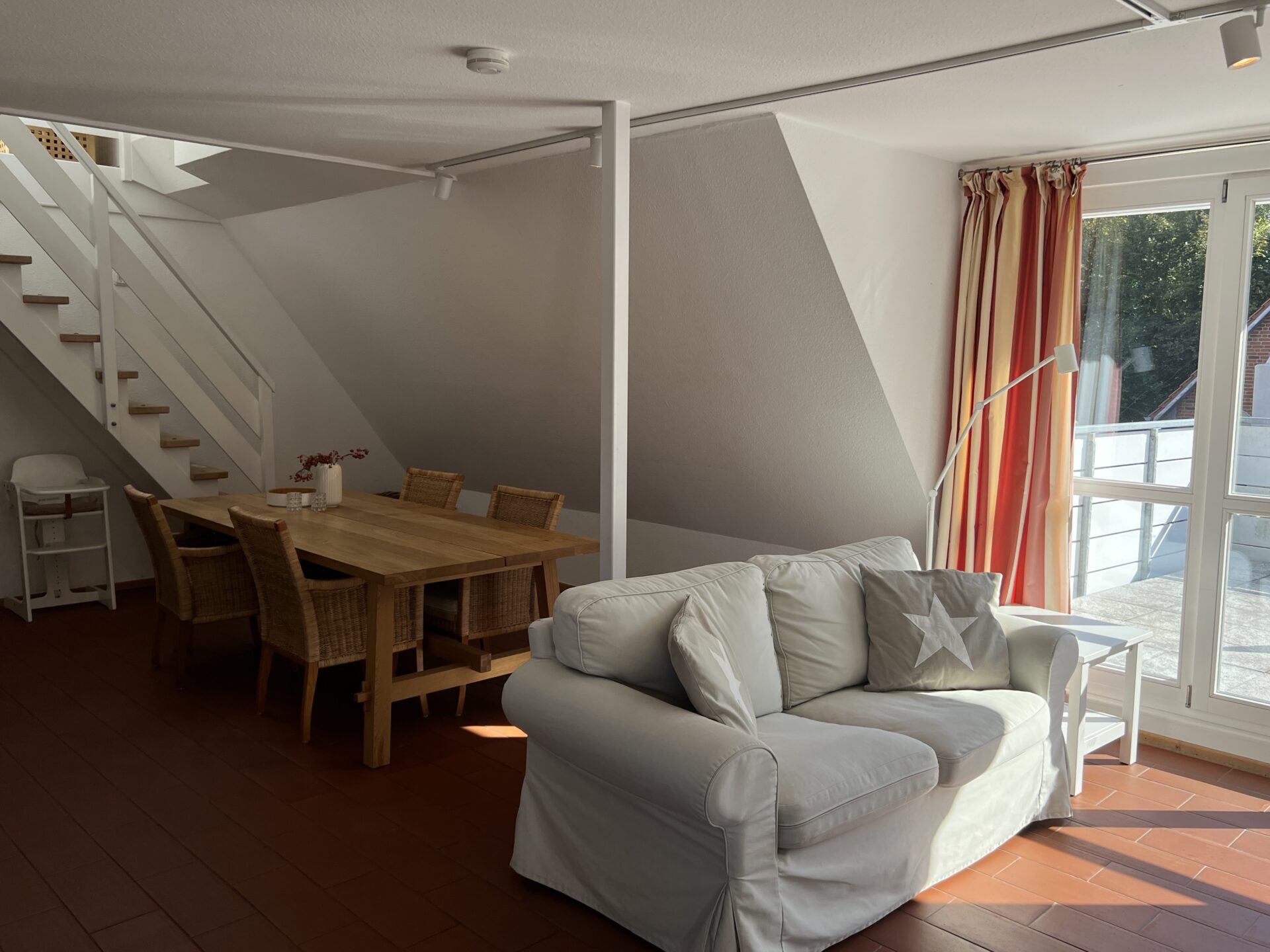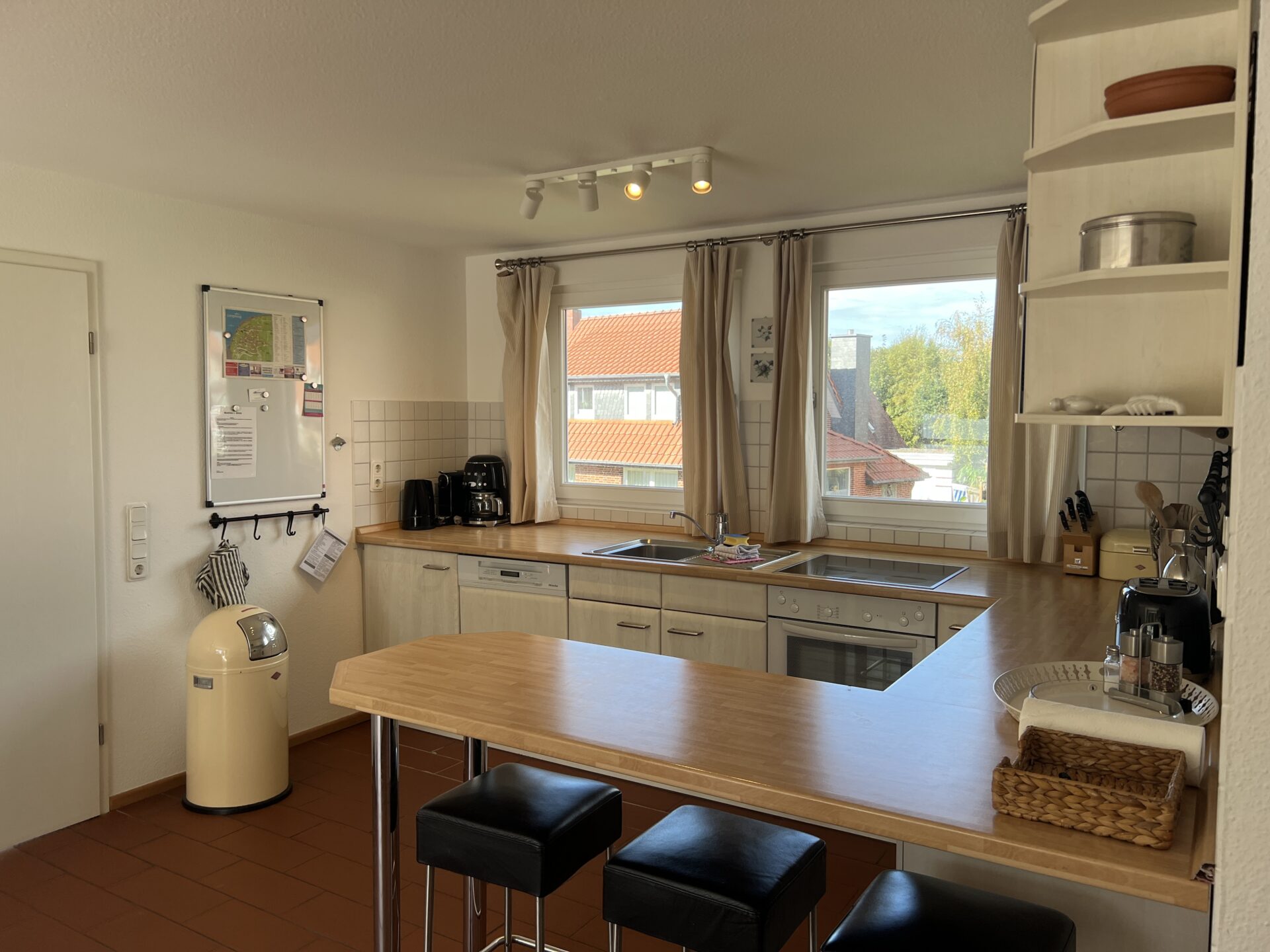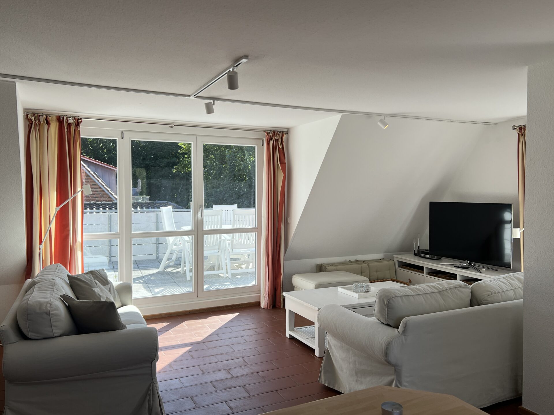 Die Wohnung ist hochwertig eingerichtet und verfügt über einen großen Wohn-/Essbereich mit offener, komplett ausgestatteter Küche und Zugang zur schönen Sonnenterrasse nach Süden, über zwei Schlafzimmer und zwei Bäder. Die Fußbodenheizung in allen Räumen sorgt für ein angenehmes Raumklima. W-Lan, Waschmaschine und Trockner stehen unseren Gästen kostenfrei zur Verfügung.