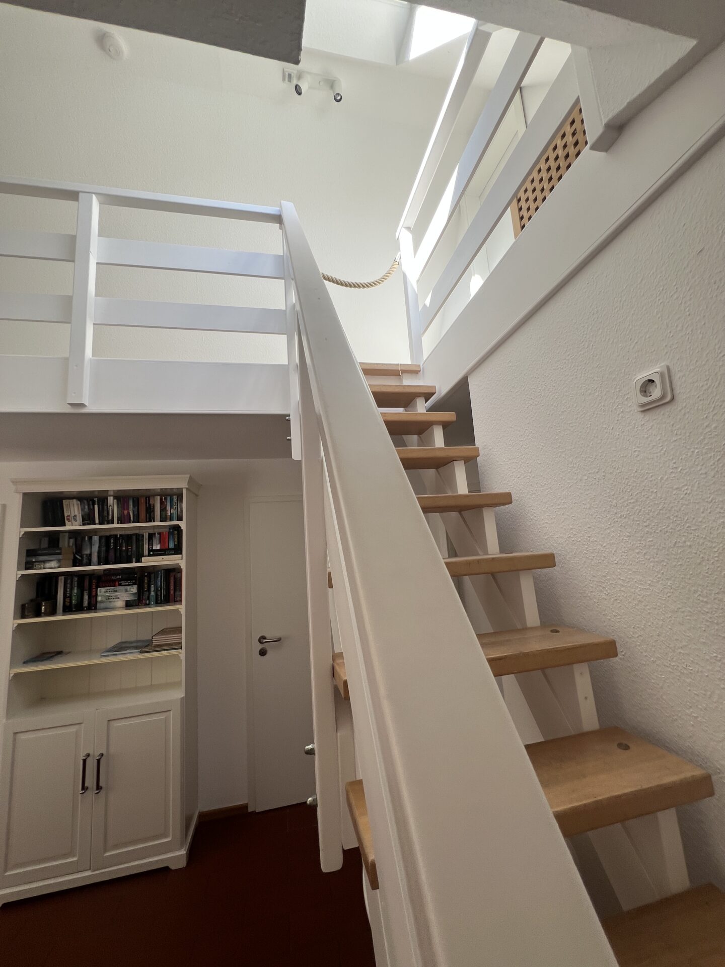 Im Obergeschoß bietet die lichte und helle Wohnung auf ca. 90m² großzügig Platz für 4-5 Personen. Der Zugang erfolgt über eine breite, bequeme Außentreppe.